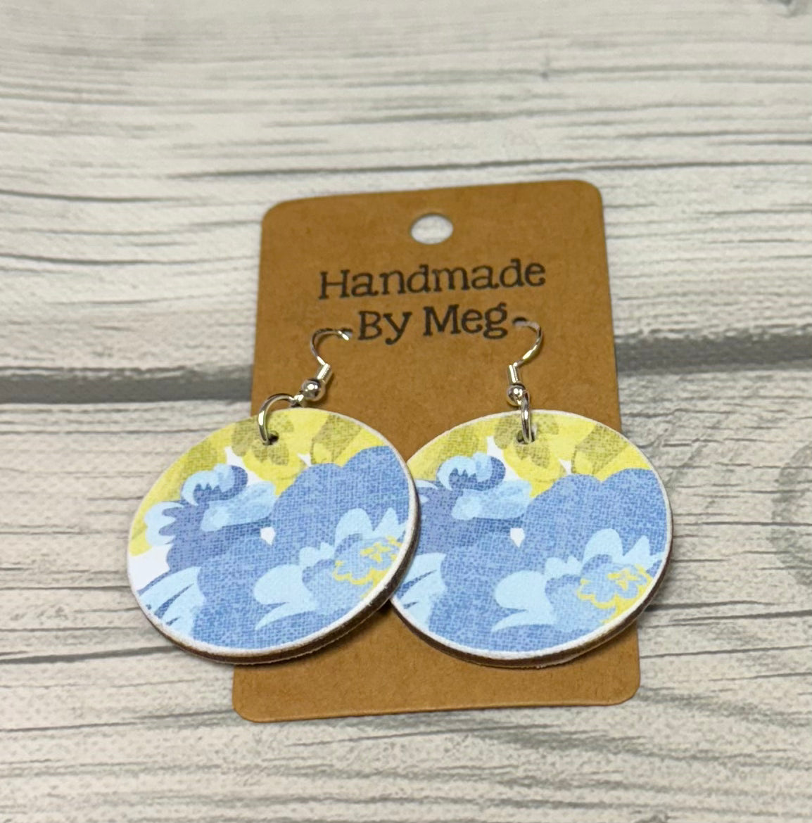 Effortlessly elevate your style with our 1.5 inch Blue and lime green flower Earrings. Handcrafted with a chic print on both sides, these earrings are sure to add the perfect touch to any outfit. Measuring 1.5 inches in diameter, they are the perfect size for everyday wear.
