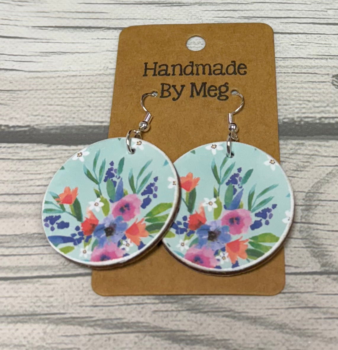 Effortlessly elevate your style with our 1.5 inch Blue background multi flowers Earrings. Handcrafted with a chic print on both sides, these earrings are sure to add the perfect touch to any outfit. Measuring 1.5 inches in diameter, they are the perfect size for everyday wear.