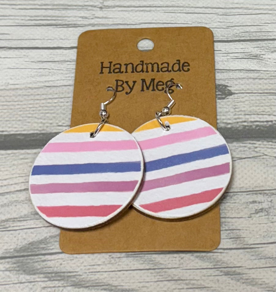 Effortlessly elevate your style with our 1.5 inch Bold Multi Stripe Earrings. Handcrafted with a chic print on both sides, these earrings are sure to add the perfect touch to any outfit. Measuring 1.5 inches in diameter, they are the perfect size for everyday wear.