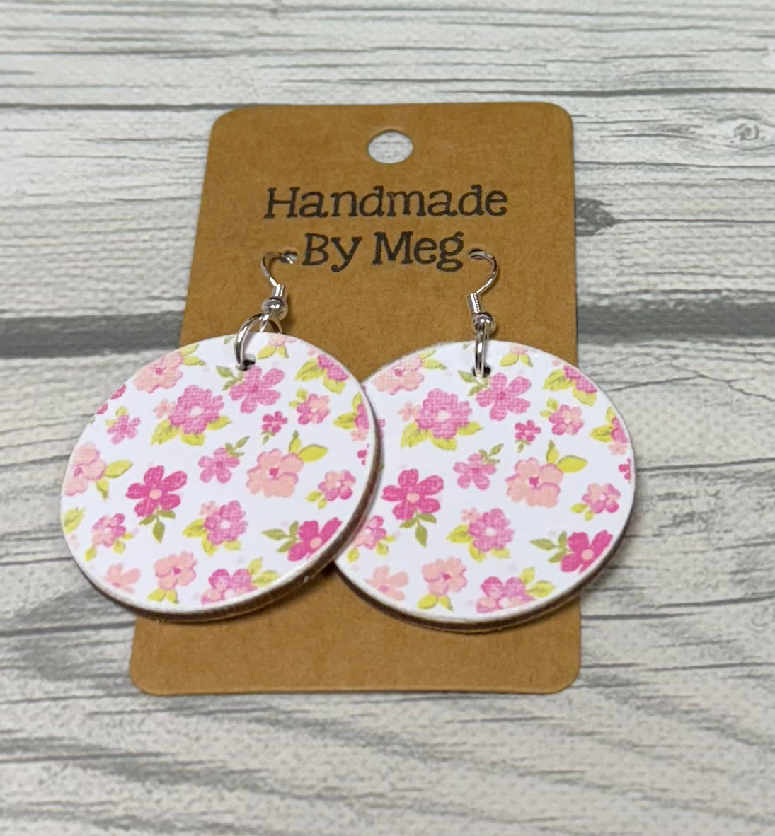 Effortlessly elevate your style with our 1.5 inch Pink Flower Earrings. Handcrafted with a chic print on both sides, these earrings are sure to add the perfect touch to any outfit. Measuring 1.5 inches in diameter, they are the perfect size for everyday wear.