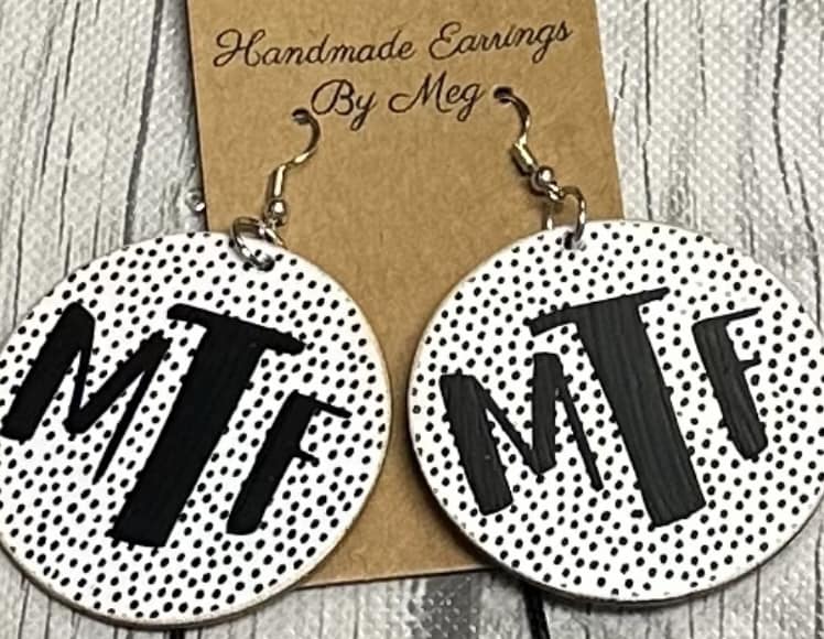 Effortlessly elevate your style with our 2 inch White background with black polkadots Monogram Earrings. Handcrafted with a chic polkadot on both sides and your monogram on the front, these earrings are sure to add the perfect touch to any outfit. Measuring 2inches in diameter, they are the perfect size for everyday wear.