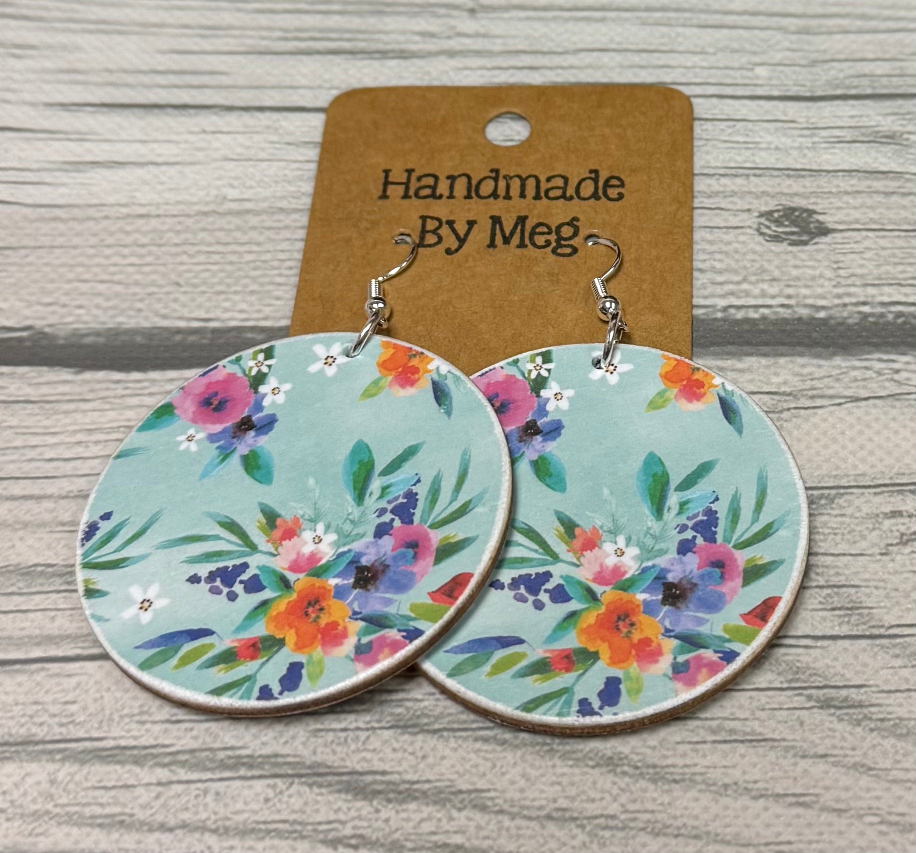 Effortlessly elevate your style with our 2 inch Blue Background Multi Flower Earrings. Handcrafted with a chic print on both sides, these earrings are sure to add the perfect touch to any outfit. Measuring 2 inches in diameter, they are the perfect size for everyday wear.