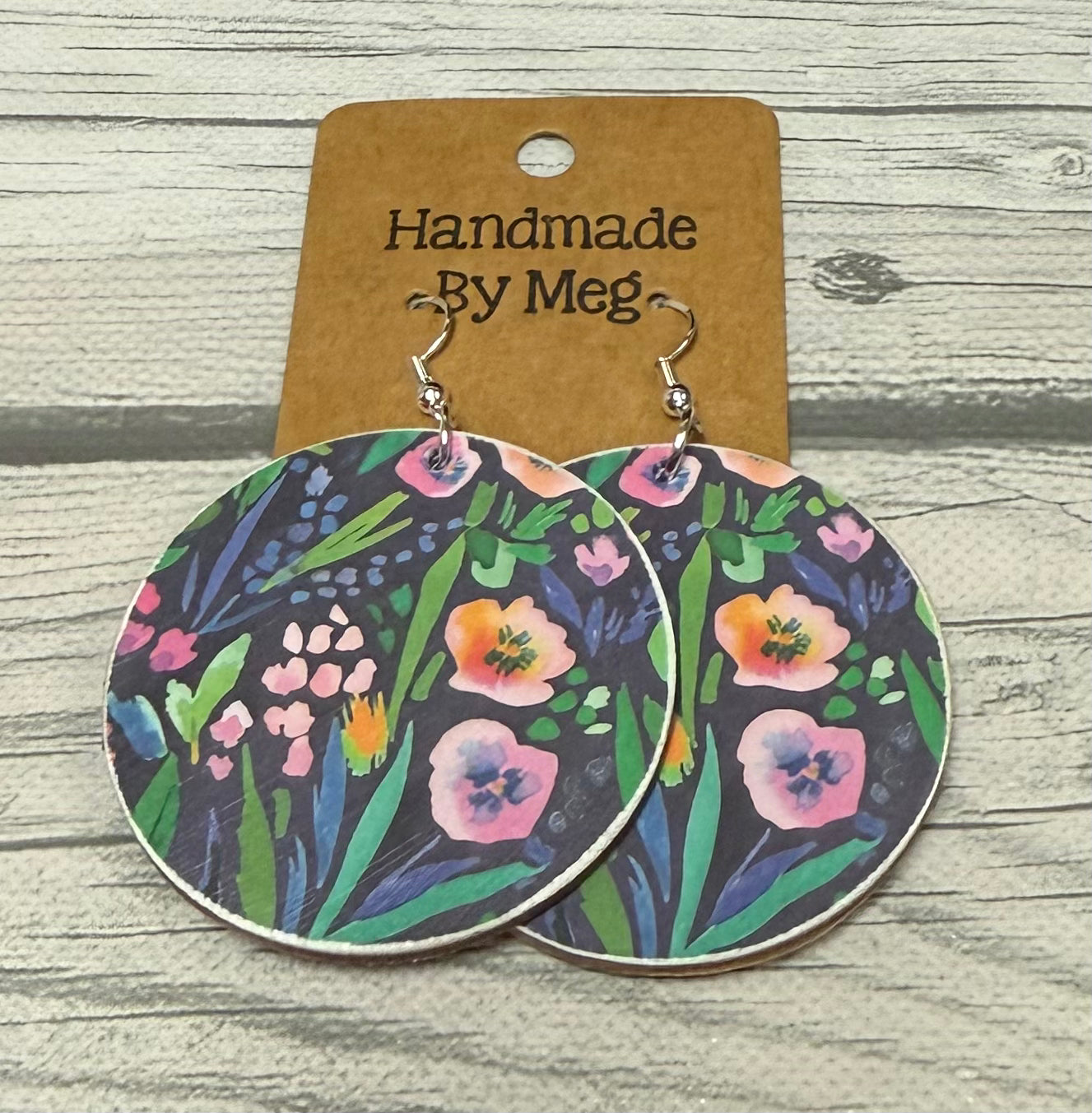 Effortlessly elevate your style with our 2 inch Dark Background Bright Floral Earrings. Handcrafted with a chic print on both sides, these earrings are sure to add the perfect touch to any outfit. Measuring 2 inches in diameter, they are the perfect size for everyday wear.