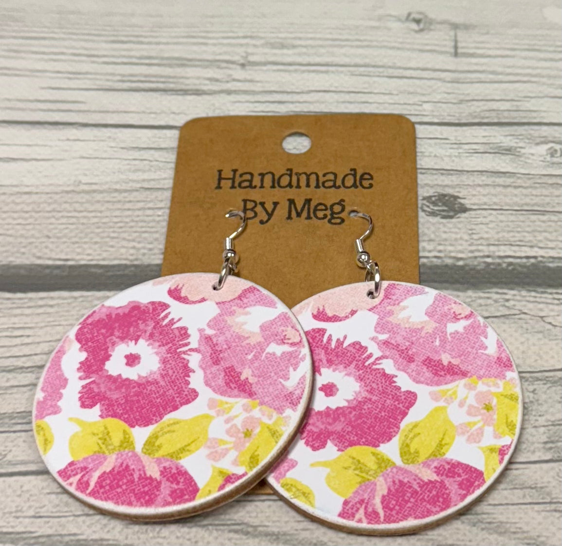 Effortlessly elevate your style with our 2 inch Pink and lime green flower Earrings. Handcrafted with a chic print on both sides, these earrings are sure to add the perfect touch to any outfit. Measuring 2 inches in diameter, they are the perfect size for everyday wear.