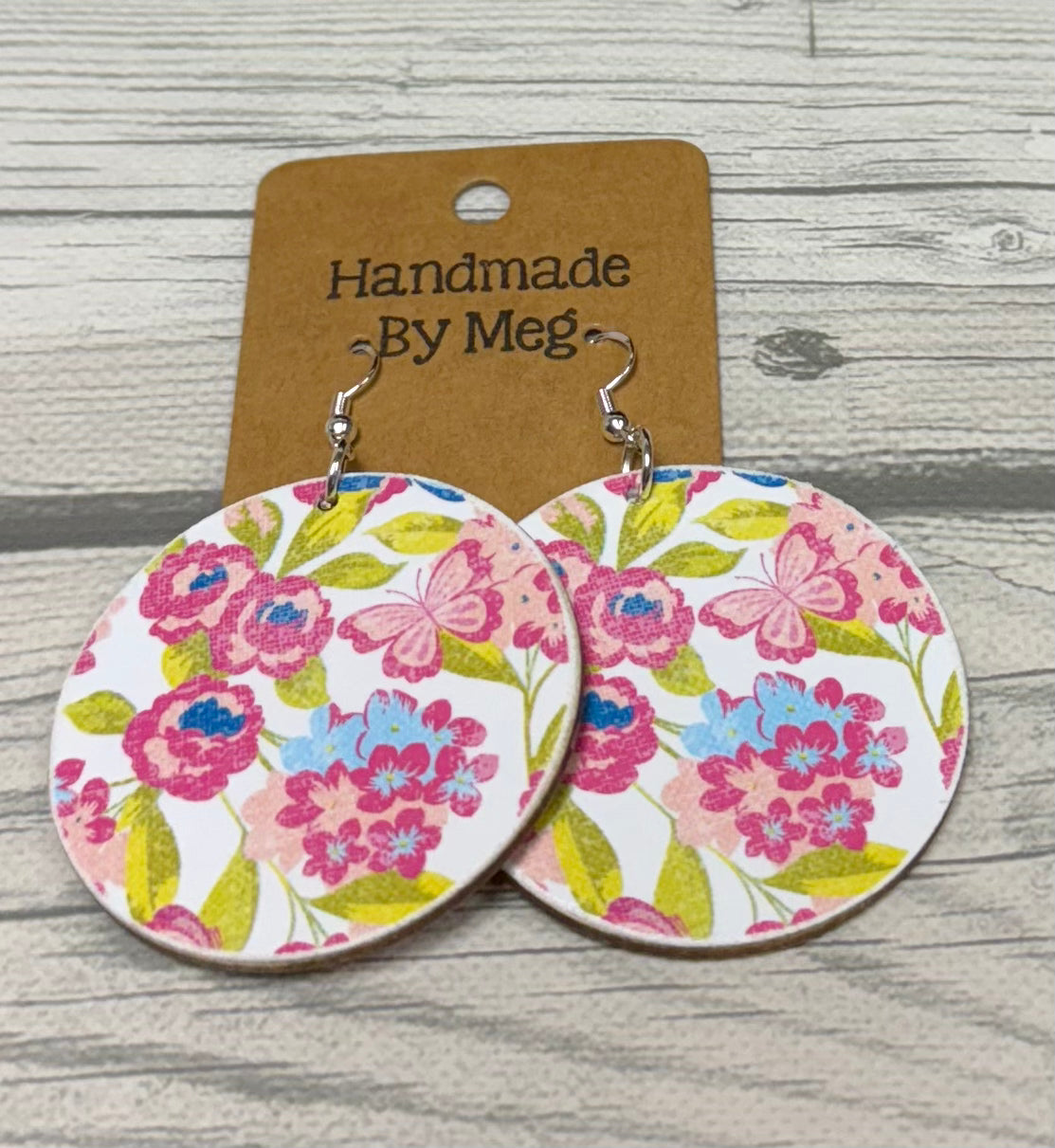 Effortlessly elevate your style with our 2 inch Pink, Blue and lime green flower Earrings. Handcrafted with a chic print on both sides, these earrings are sure to add the perfect touch to any outfit. Measuring 2 inches in diameter, they are the perfect size for everyday wear.