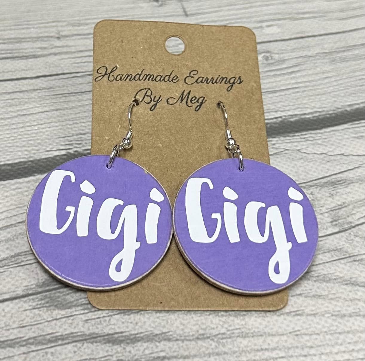 Effortlessly elevate your style with our 2 inch Purple Gigi Monogram Earrings. Handcrafted with a beautiful purple on both sides and Gigi monogramed on the front, these earrings are sure to add the perfect touch to any outfit. Measuring 2 inches in diameter, they are the perfect size for everyday wear.