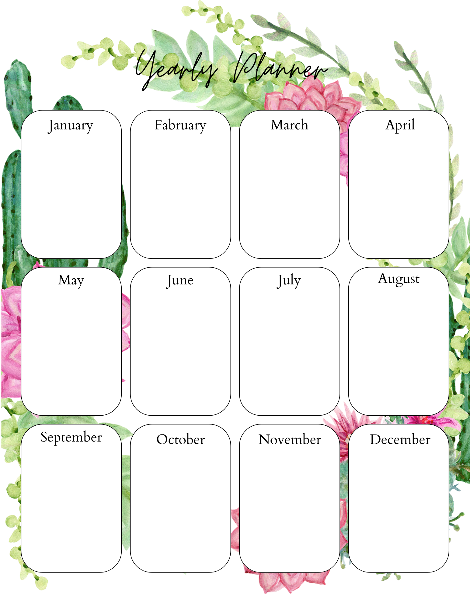 Boost your productivity with our Custom Succulent Monthly Planner. Stay organized with the monthly calendar, note pages, budget tracking, Lesson Plan Pages, Password tracker, yearly events, birthdays and weekly planner pages. Simply add your email at checkout and receive a beautifully designed PDF for easy printing.